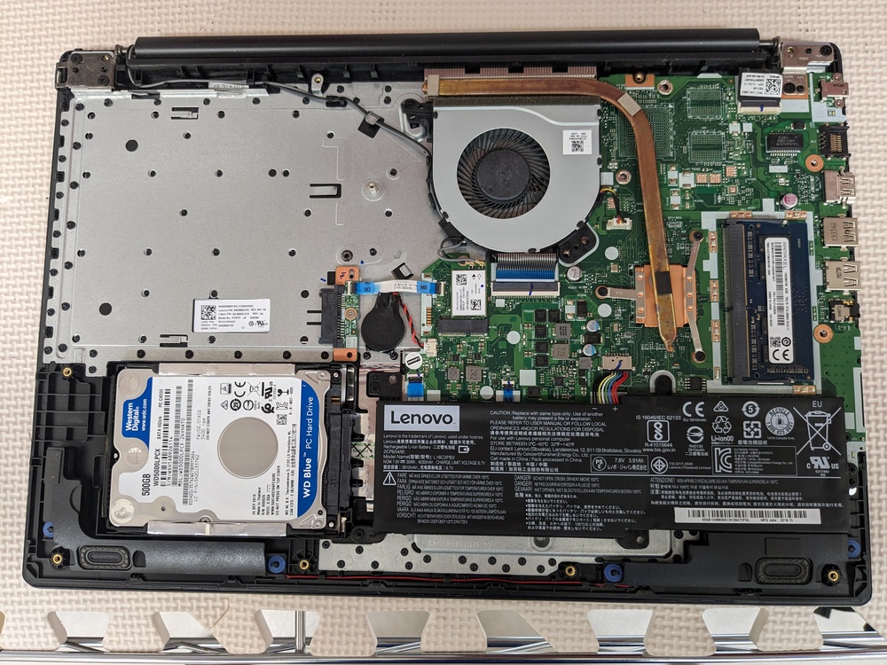 背面のネジを全て外し、カバーを丁寧に取り外します。SSDにハードディスクのデータを移し