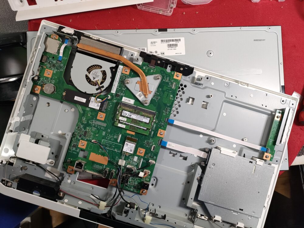 ​分解作業: 今回は一体型PCのため、背面から分解。ネジの数が非常に多く、液晶パネルに辿り着くまでに一苦労しましたが、慎重に作業を進めました。