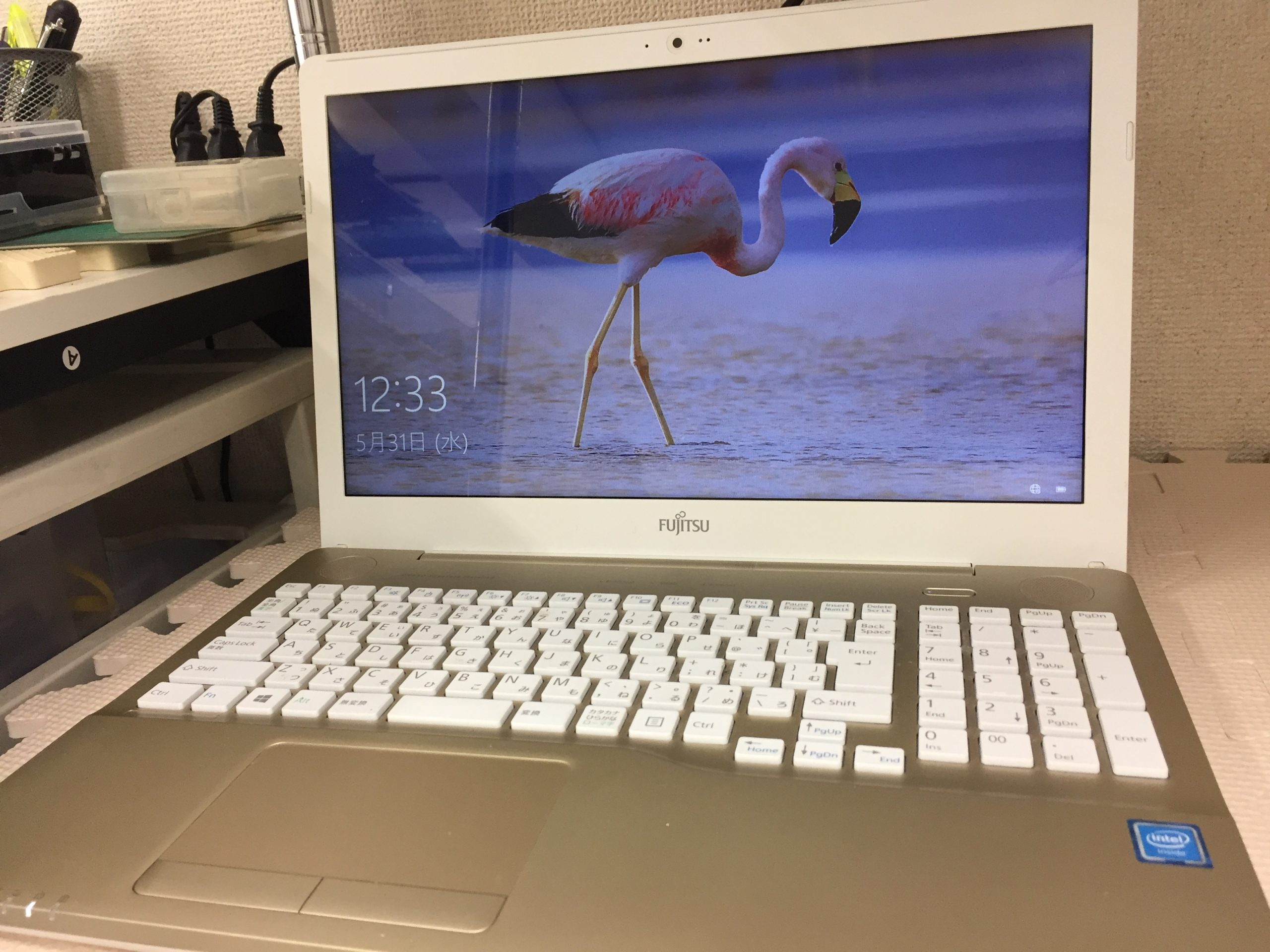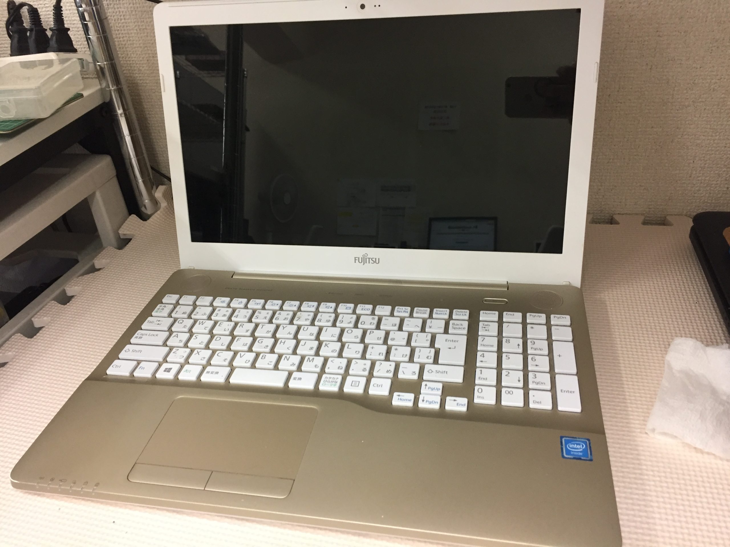 今回お預かりしたパソコンは富士通の白い15.6型のノートパソコンになります。