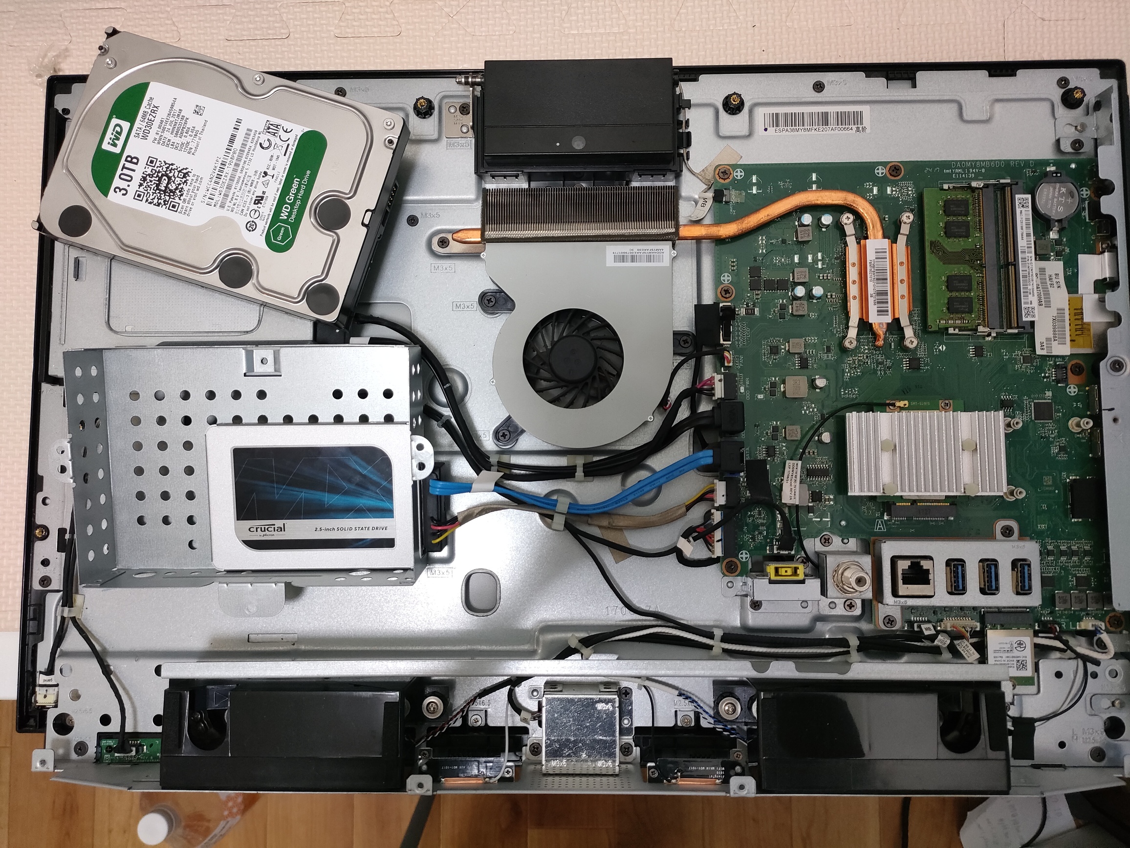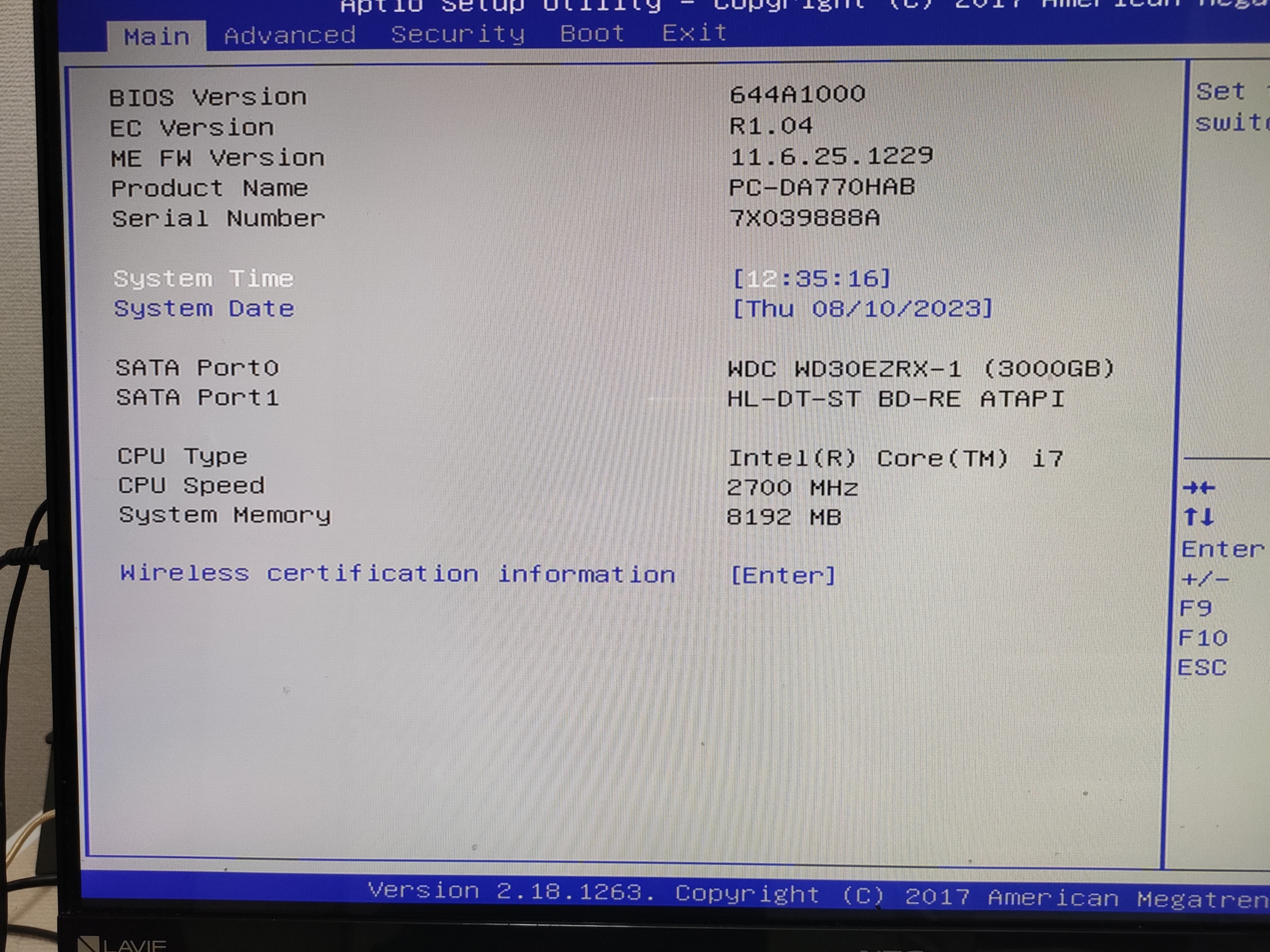 早速 、BIOSを確認。ハードディスクは認識されいましたので、分解してハードディスクを取り出し、SSDヘクローニング。不具合が改善するか確認を行いました。