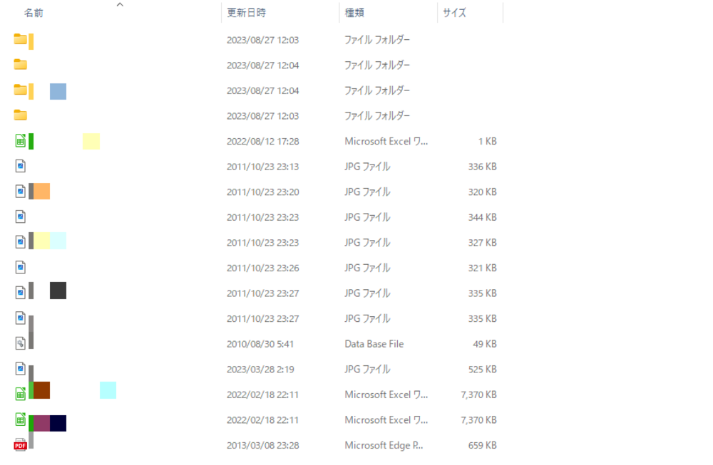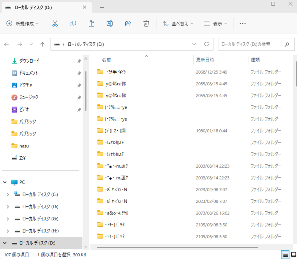 フォルダーが全て文字化けしており更新日時がおかしくなっているものが見当たります