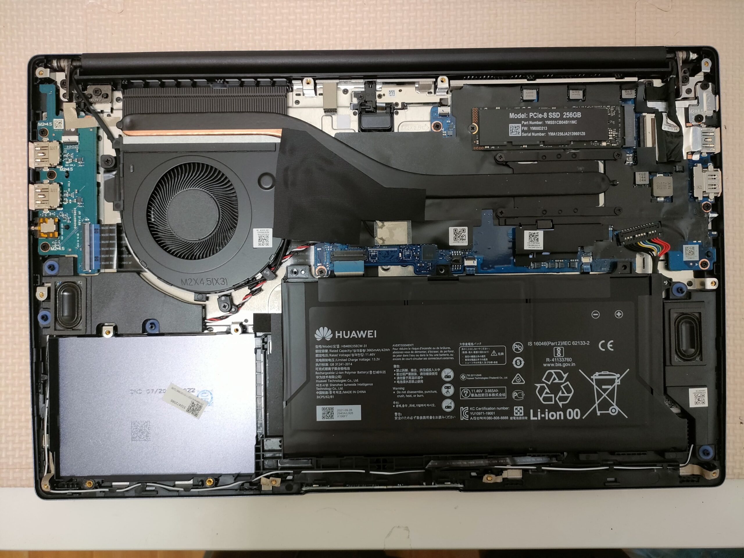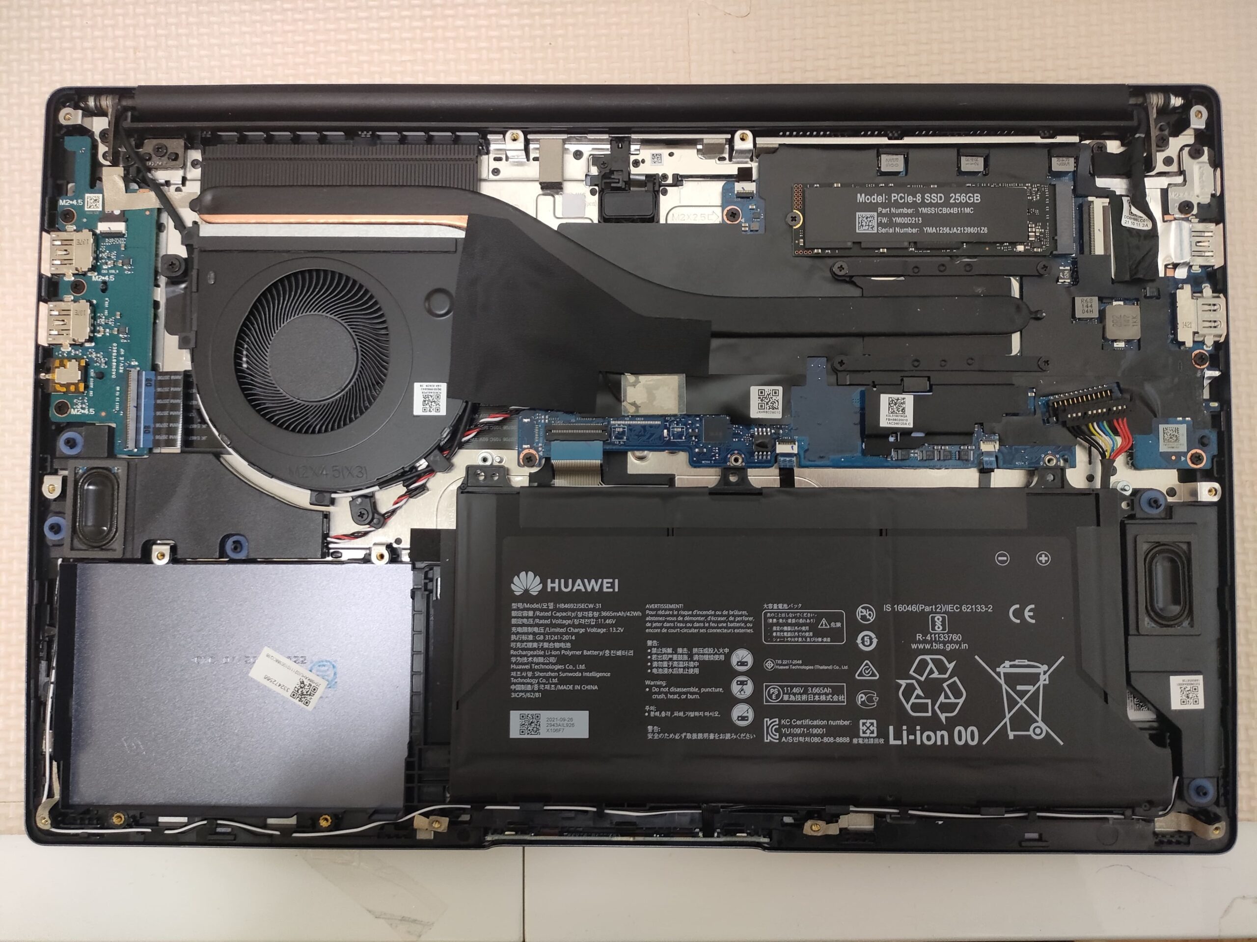 こんにちは。 パソコン修理ミータスネット大倉山店です。今回は、画面がピンク色に変わり、液晶が一部破損したパソコンについて、液晶パネルの交換をご依頼いただきました。対象機種は、HUAWEI MateBook D15 BOB-WA19Q です。お客様からは、特に強くぶつけたり押した覚えがなく、画面が突然全体的にピンクになり、一部が表示できなくなったとの説明をいただきました。実際に確認したところ、外部からの圧力の跡は見当たりませんでした。