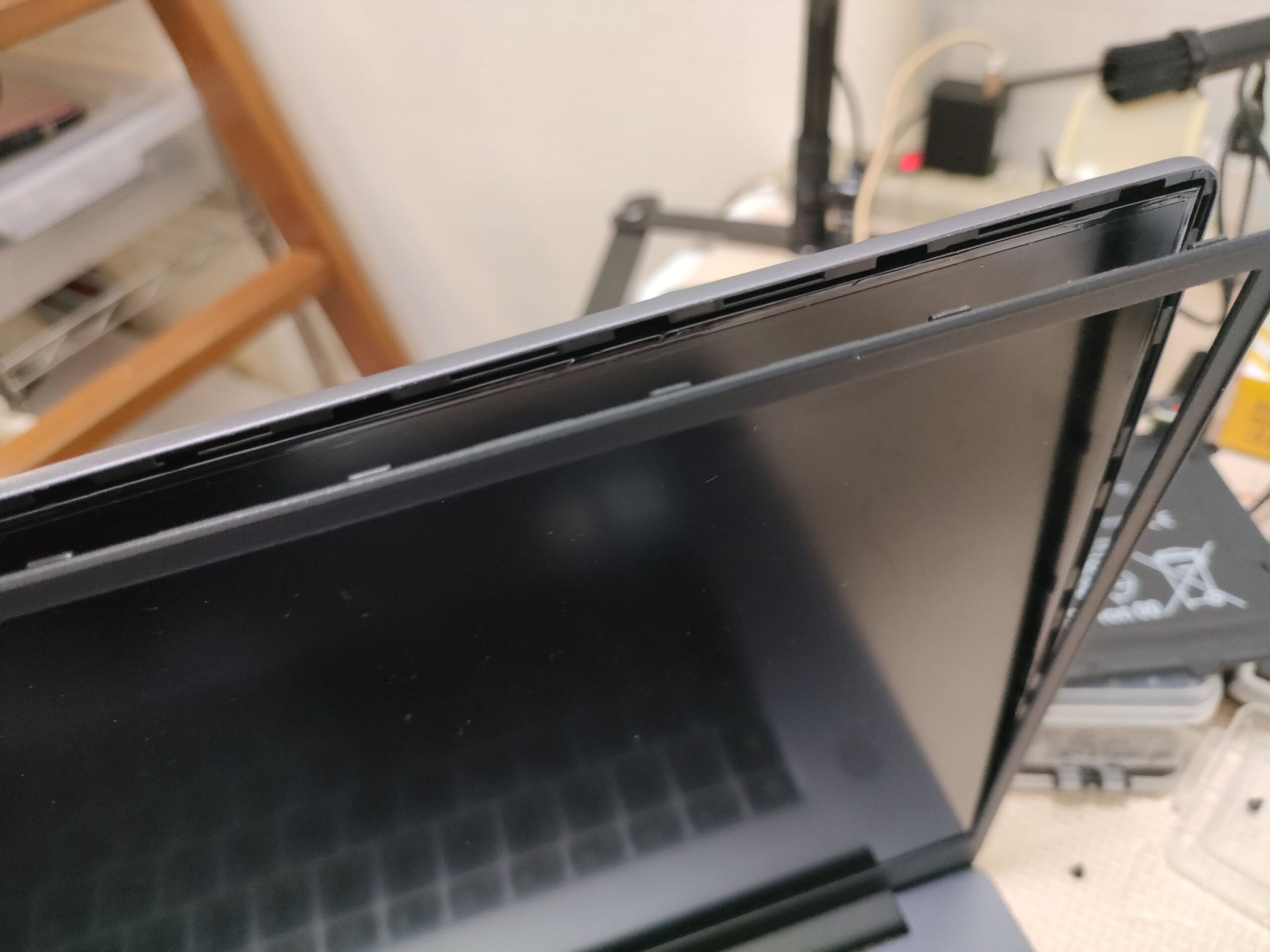また、このパソコンは洗練されたデザインで、モニター部分が非常に薄いため、液晶パネルはトップカバーに接着されており、取り外しには注意が必要でした。交換後、画像は正常にカラー表示され、お客様も業務で再び利用できることに大変喜ばれました。