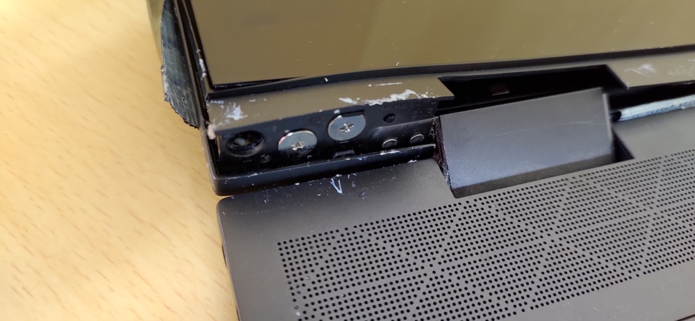 壊れたヒンジを固定してこれ以上液晶が動かないようにします。