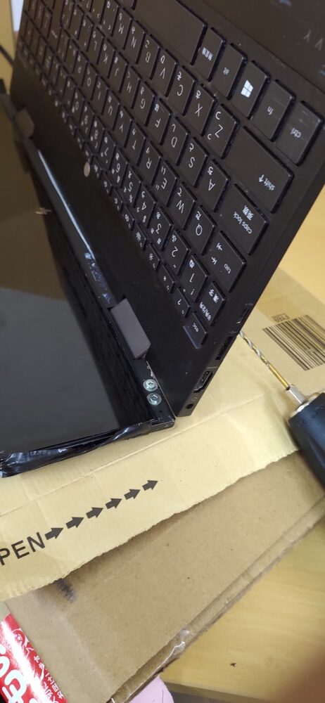 壊れたヒンジを固定してこれ以上液晶が動かないようにします。
