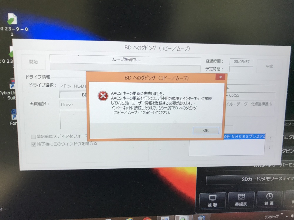AACSキーの期限が切れていると表示され「はい」を選択しても…