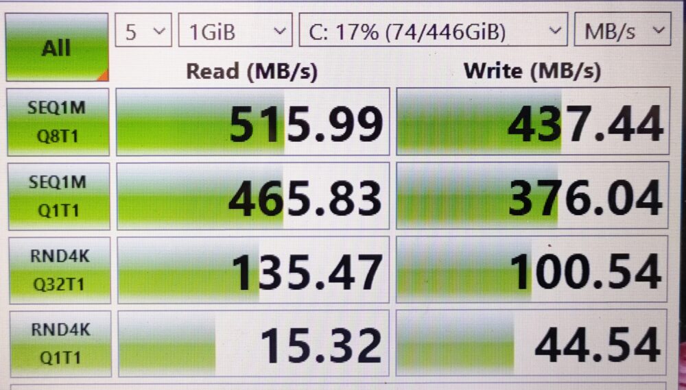 その結果、起動に掛かる時間は1分程に大幅短縮され、ソフトもすぐに起動できる状況まで改善しました。お客様には 「普段 インターネットで買い物などをしているため 非常に便利になった」とお喜びいただけました。以下が、修理前後の速度の違いです。数値上では、大凡4~5倍速度が向上しています。