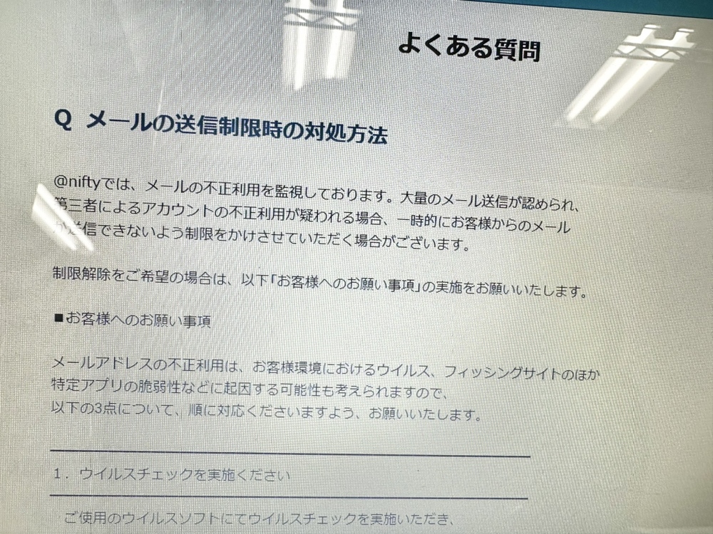 送信しようとしたところ、メールの送信規制がかかっているとメッセージが出てきました。