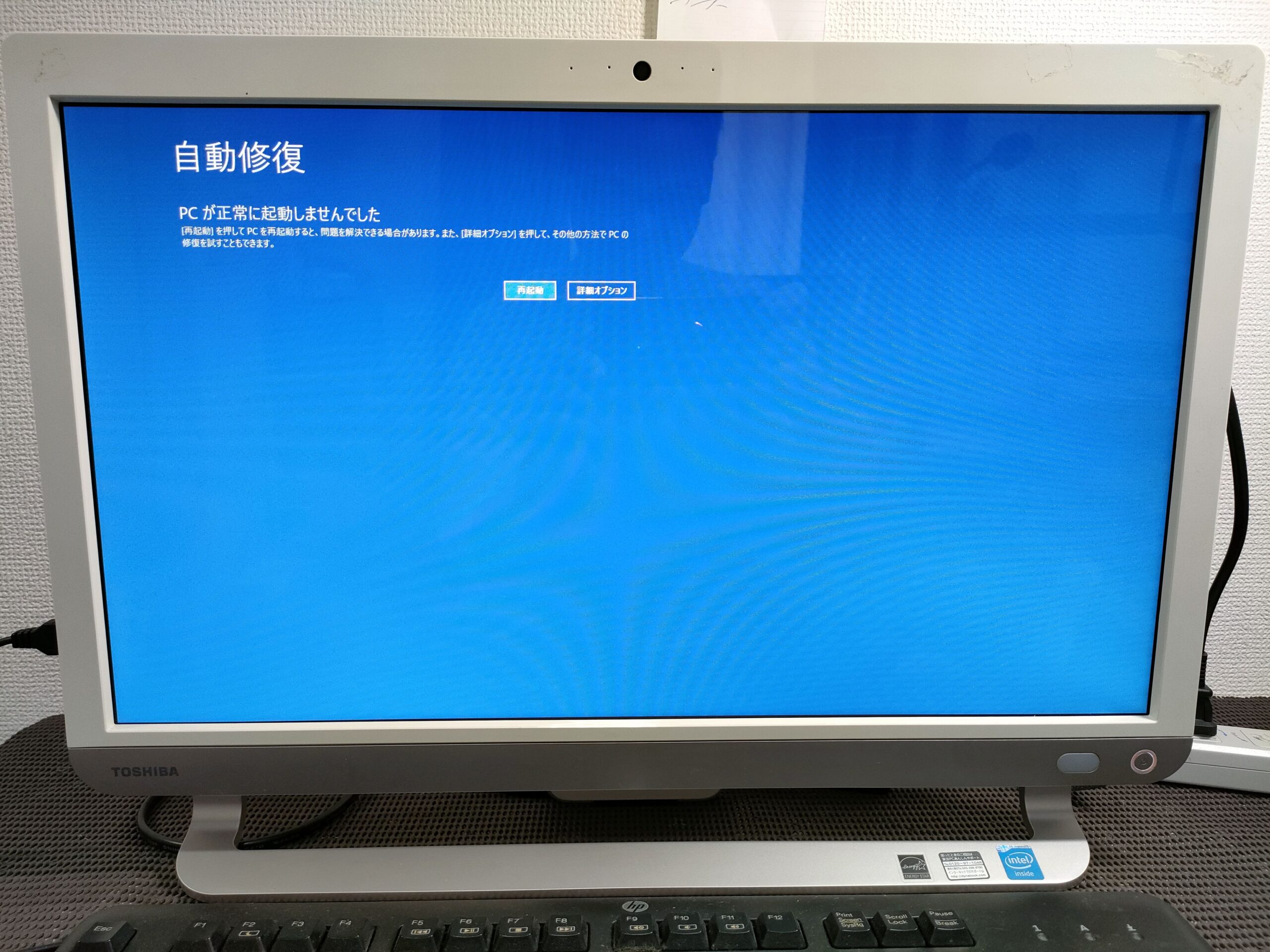 今回のお客様は 自動修復が正常に完了しないということで 一体型の東芝 パソコンをお持ち込みいただきました。