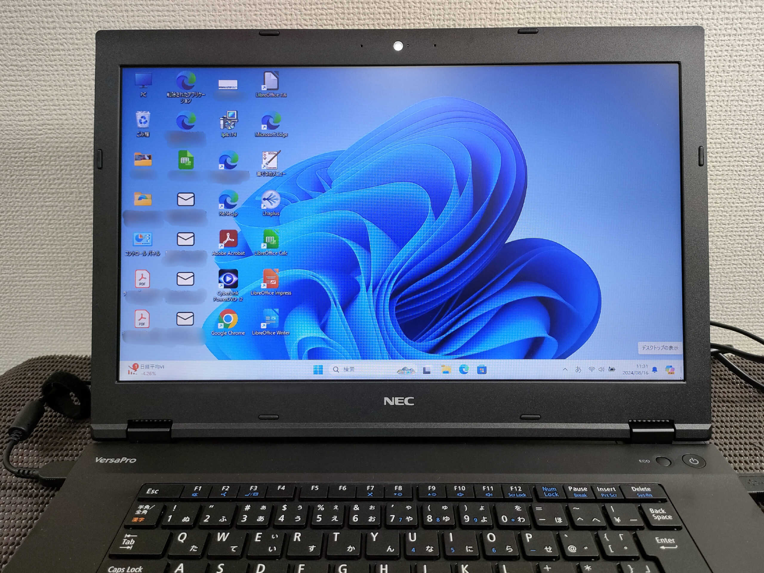 また、以前使用していた マイクロソフトオフィスのエクセル、ワードのデータはノートパソコンにプリインストールされているLibera officeでご使用いただくことにしました。