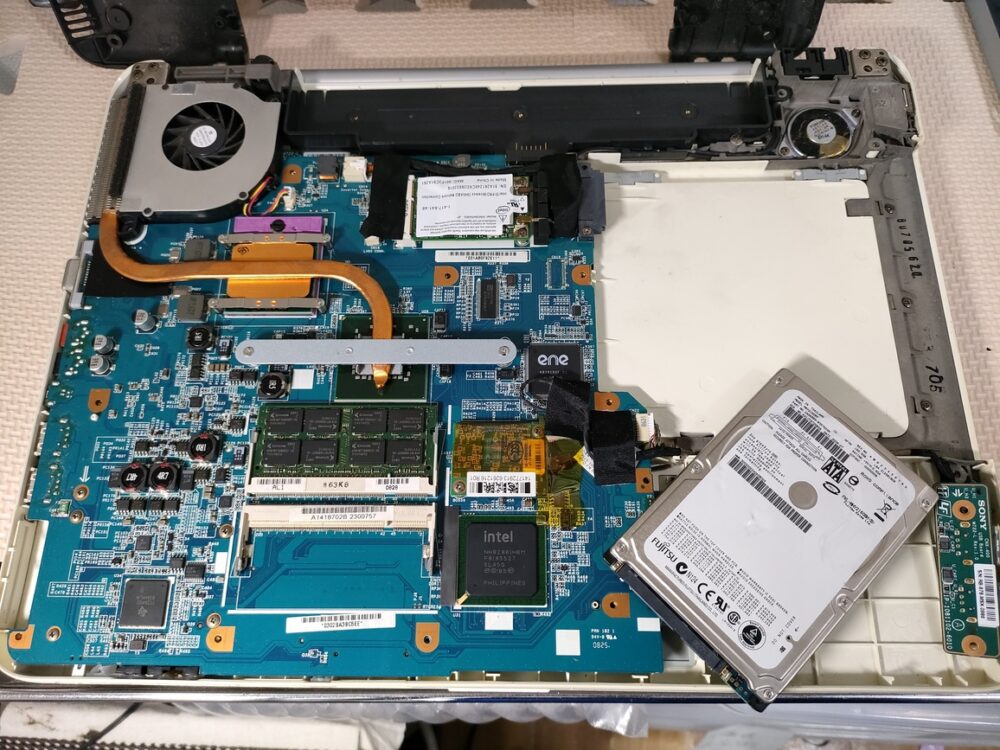 さすがに 昔のパソコンはネジの数が昨今のものに比べ 多く、分解に時間がかかりましたがハードディスクを取り出すことができました。