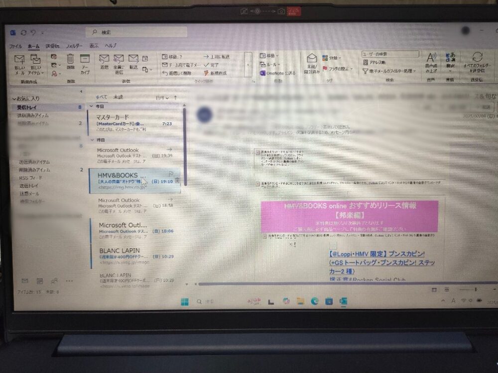 Lenovo IdeaPad3 Outlookメールが消えた