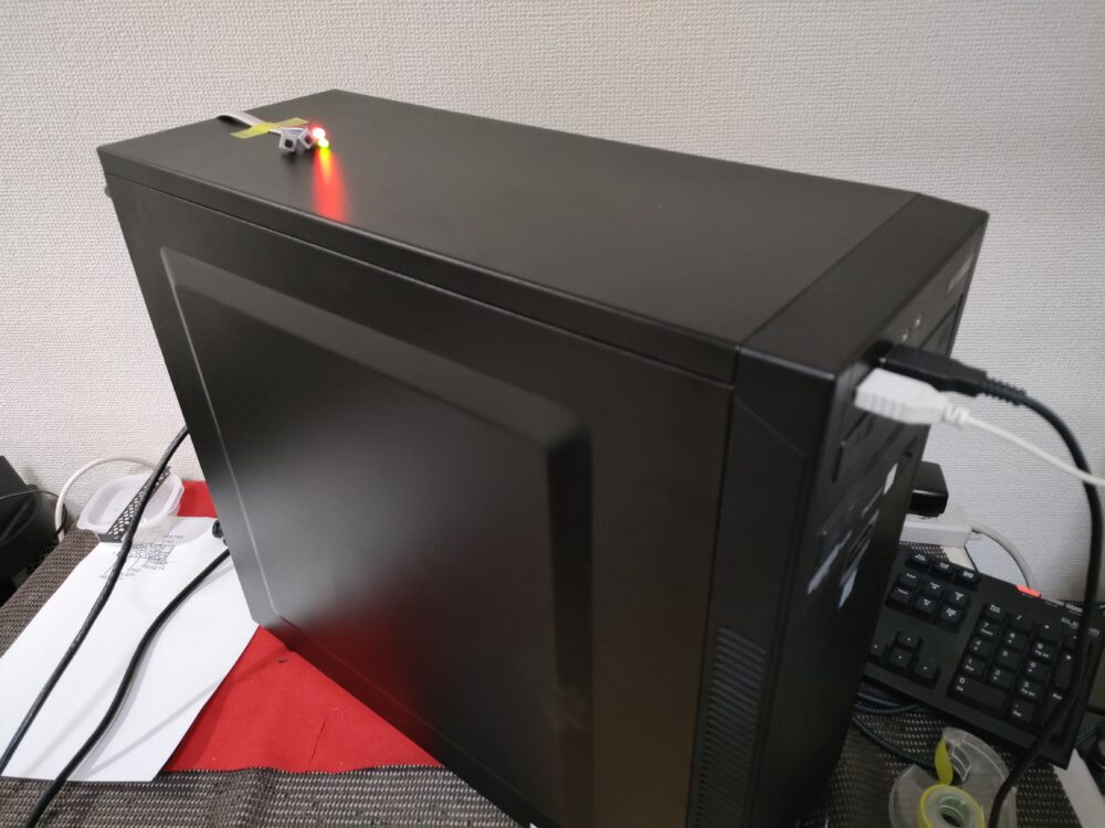 お客様と相談しPCケースを変えるのは 次回にして今回はこのような外側にスイッチを回すことで応急対応しました。