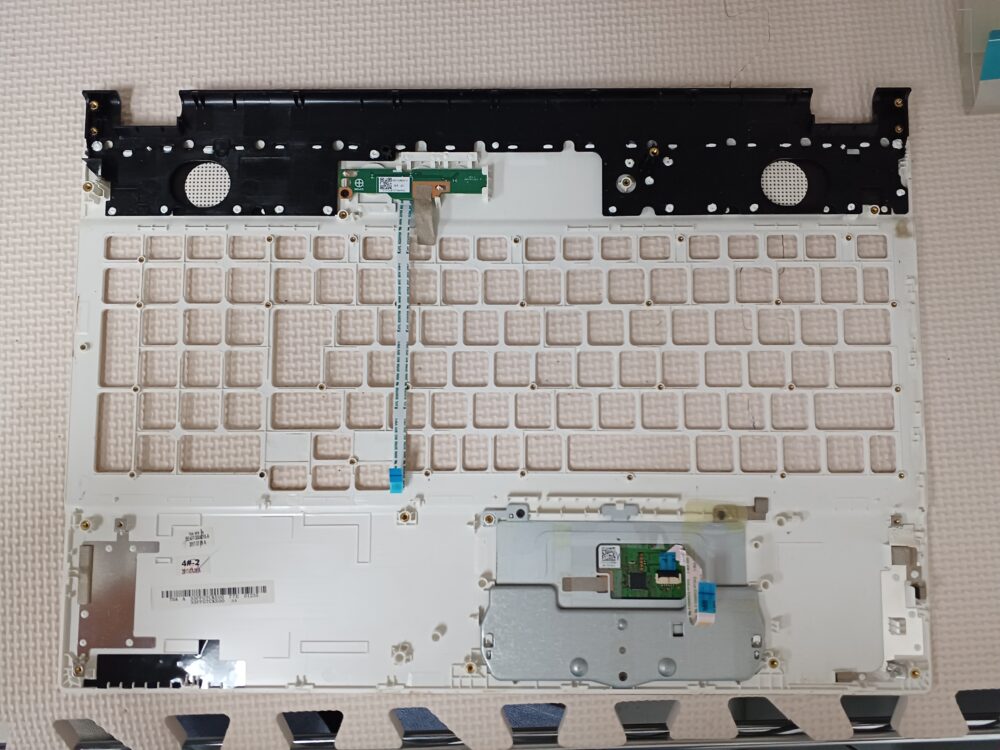 このタイプのキーボードはキーボード周辺の枠(パームレスト)に裏から溶接されている事が多く作業が困難、また高額になる事が多いですが、