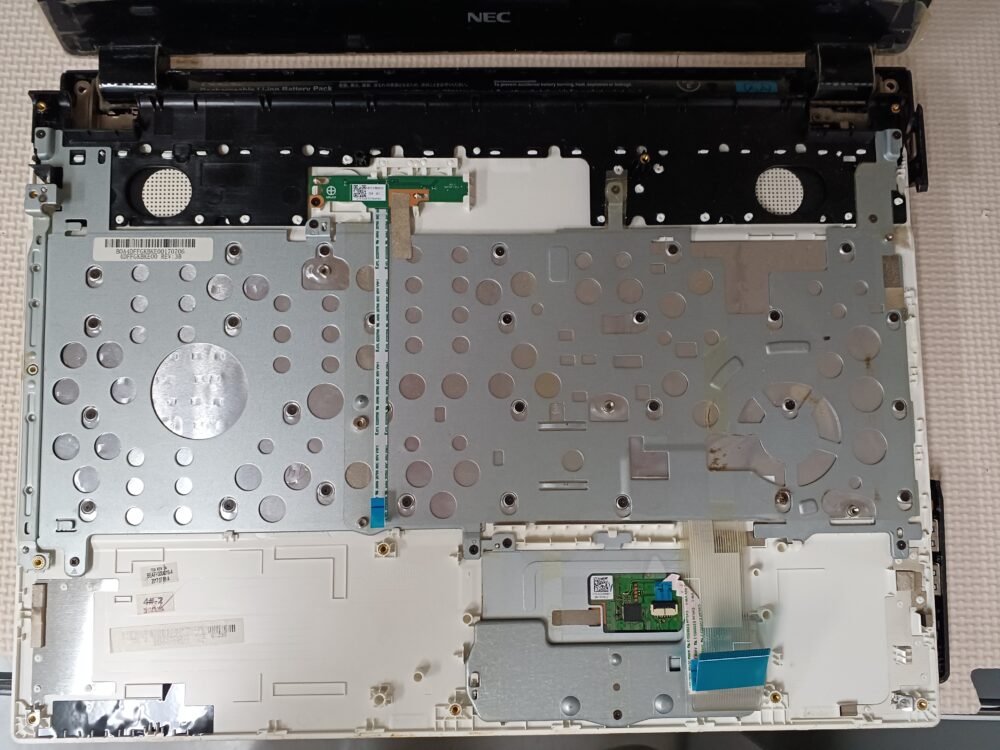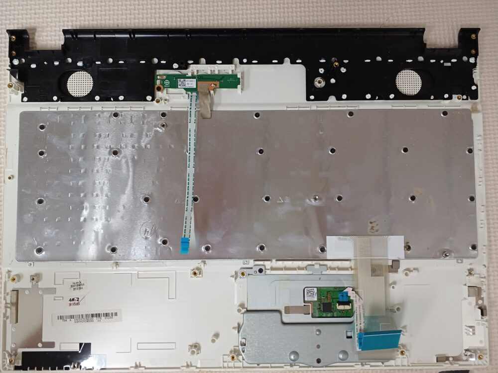 このタイプのキーボードはキーボード周辺の枠(パームレスト)に裏から溶接されている事が多く作業が困難、また高額になる事が多いですが、